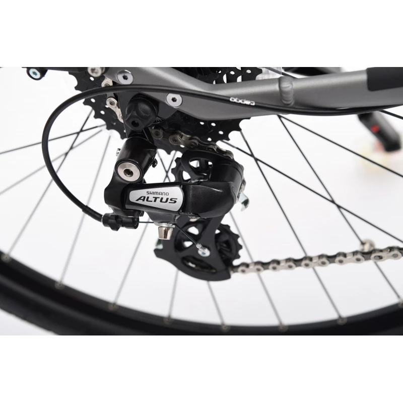 De robustes pneus Continental de 27,5 » et une fourche aluminium à suspension à l’avant vous permettront d’atteindre votre destination sereinement, même hors des sentiers battus.